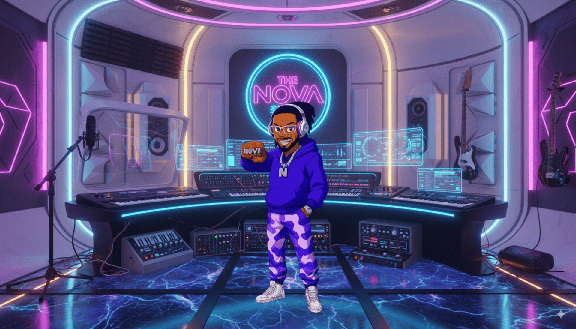 At Novi773, we craft immersive experiences through music and design, redefining the digital landscape with a sleek, dark aesthetic and vibrant accents. Join us on this creative journey.